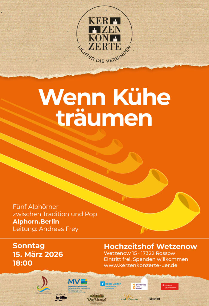 Im Rahmen der Kerzenkonzerte im Uecker-Randow Land 2026 findet am 15. März das erste Konzert bei uns in Wetzenow statt.